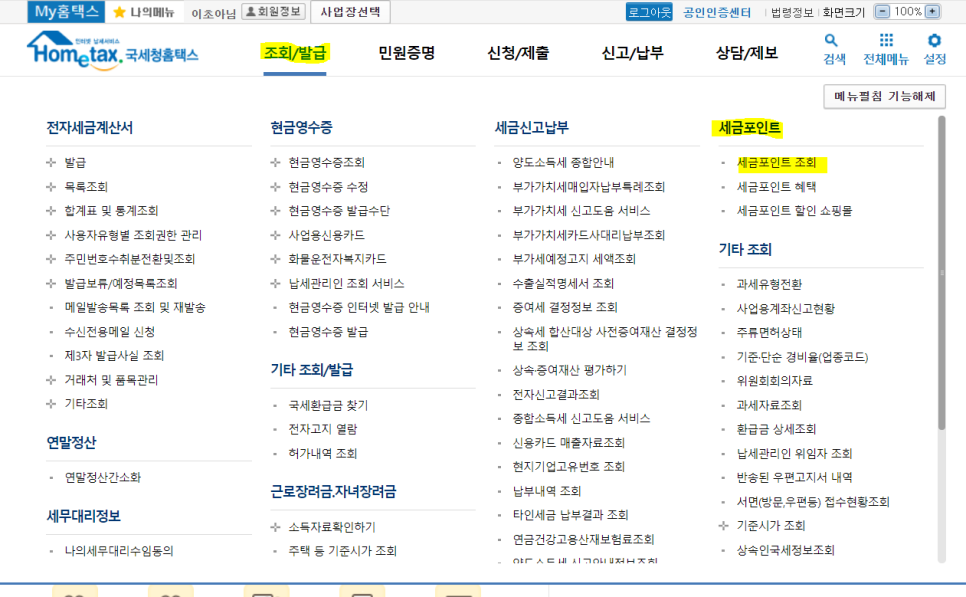 그럼 본인에게 세금포인트가 얼마나 있는지 확인부터 해봐야겠지요??