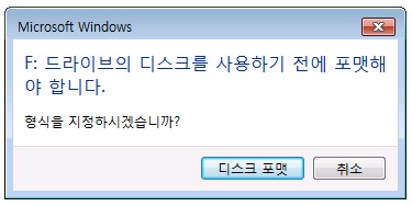 드라이브의 디스크를 사용하기 전에 포맷 해야 합니다