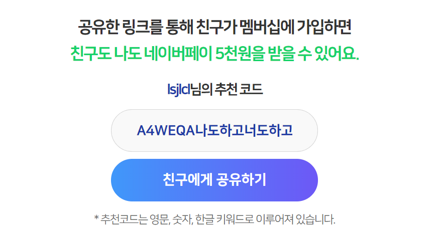 지금 친구에게 추천을 하면 친구도 나도 네이버페이 5천원을 받을 수 있어요