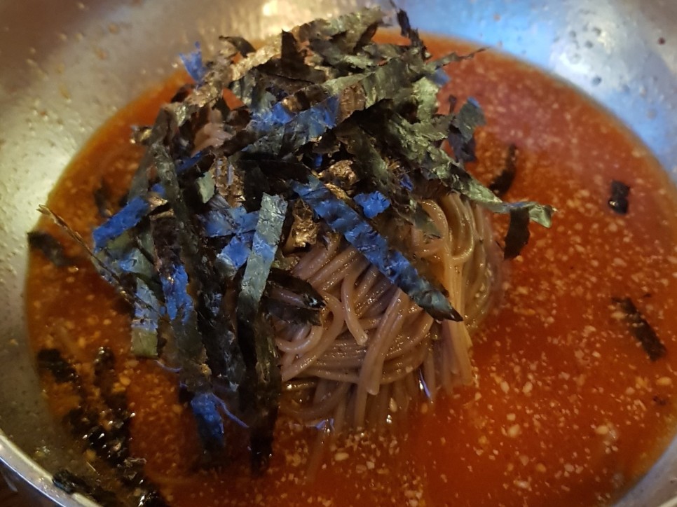 한그릇에 6천원짜리 막국수는 밑에 양념이 다 가라앉져서,