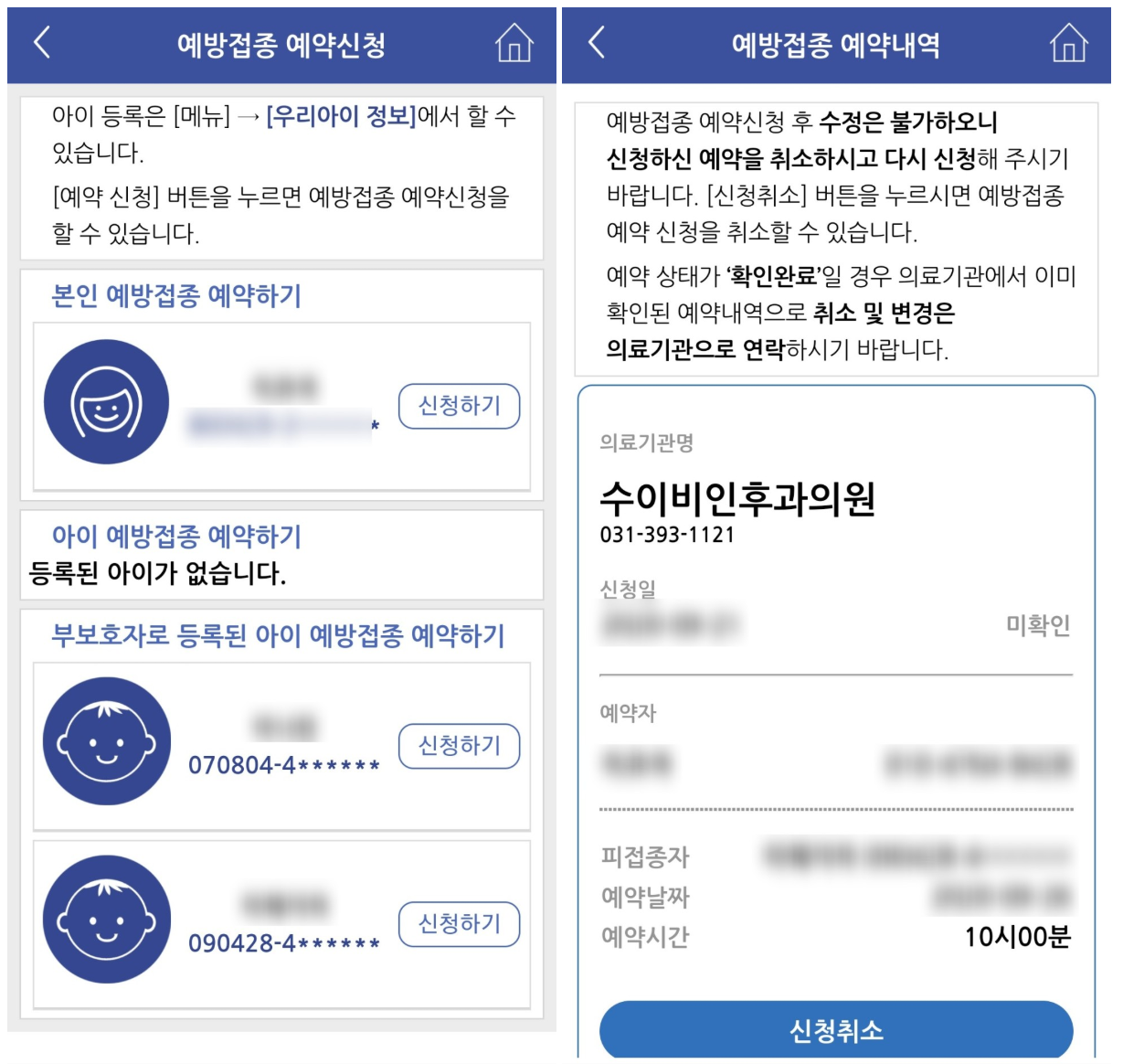 병의원 선택 및 접종 날짜와 시간까지 예약이 가능해요