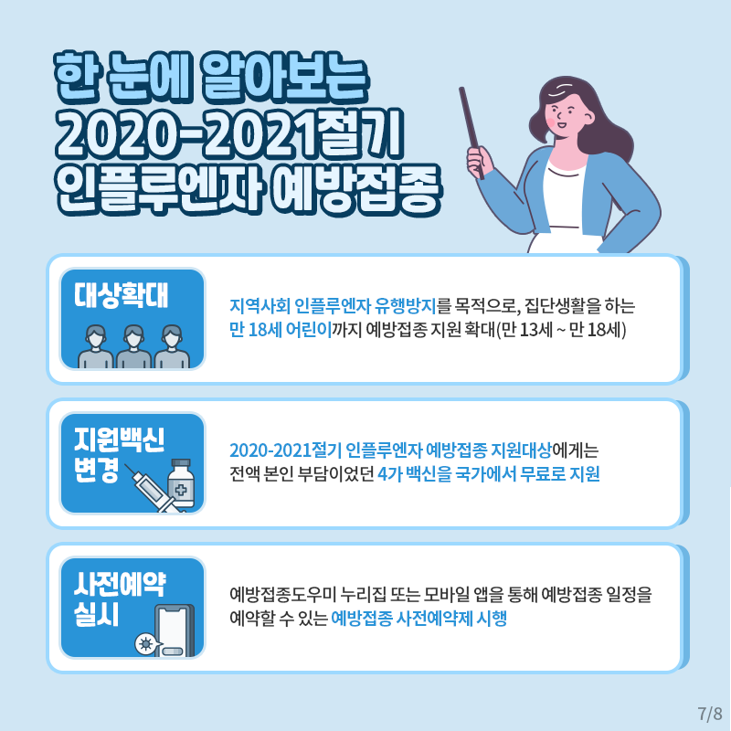동시 유행을 최대한 억제하기 위해 인플루엔자 예방접종 대상을 확대하였어요