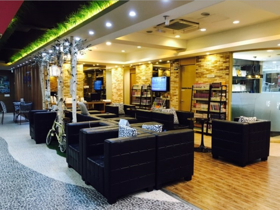 만화책 소설책이 여기저기 가지런히 정리가 되어 있었고, 한쪽에 커피나 음료를 마실 수 있게 준비도 되어 있었어요
