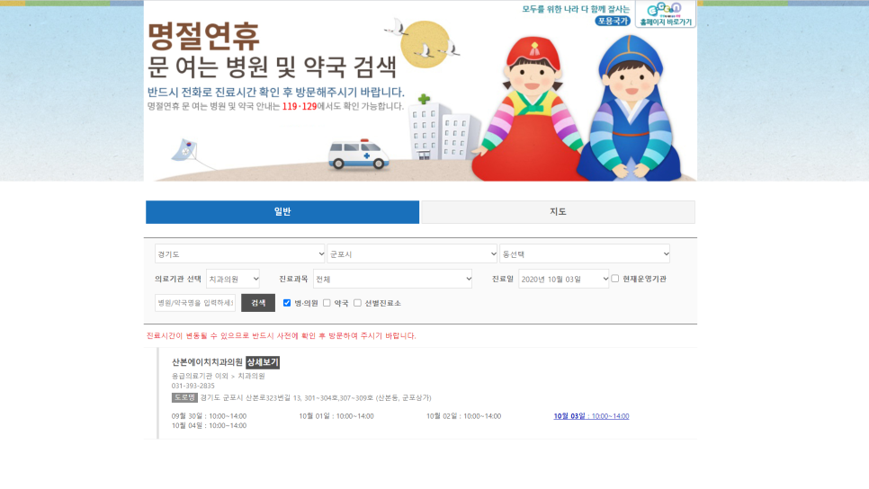 #119 #129 전화를 하여도 명절연휴에 진료가능한 병원을 할 수 있다고 하는데요