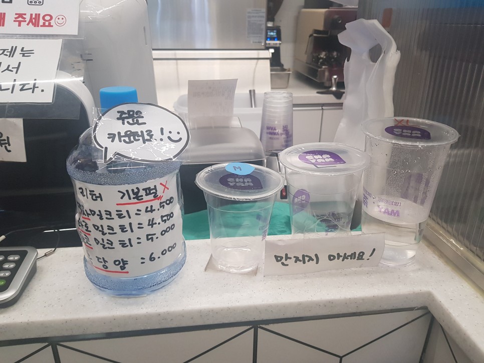 차얌밀크티는 무인계산기에서도 주문 및 결제 가능 / 그외 1리터밀크티는 직원에게 주문해야 합니다