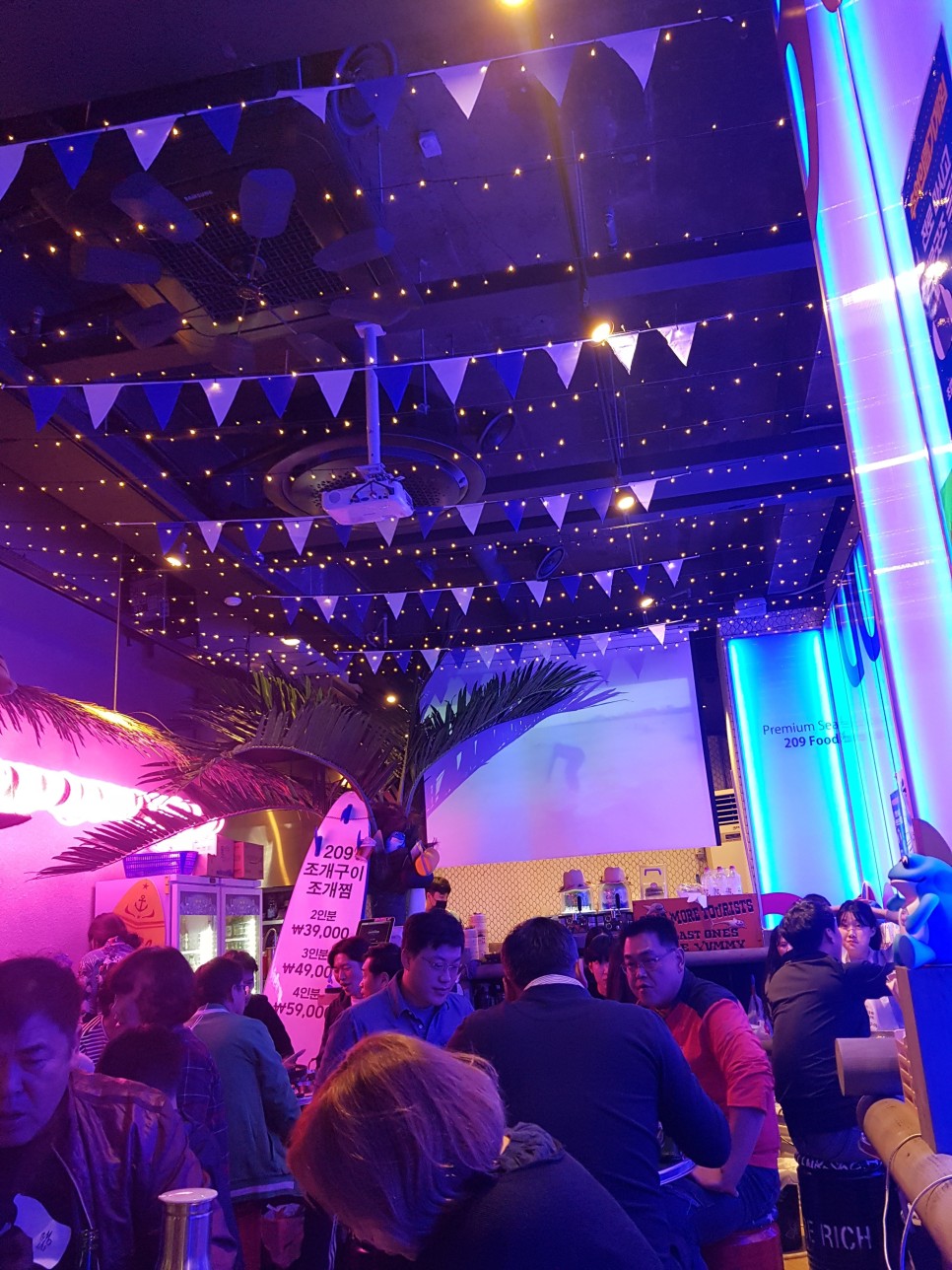 인테리어도 이색적이게 여름휴양지처럼 꾸며져 있고~ 스크린에는 해변가에서 보드타는 영상이 계속 플레이 되고 있어요