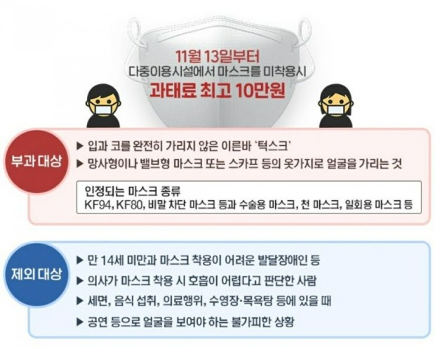 #대중교통 #집회 #의료기관에서는 꼭 착용을 해야하는 시행단계를 10월 13일부터 마스크 착용 의무화를 하고 있죠?