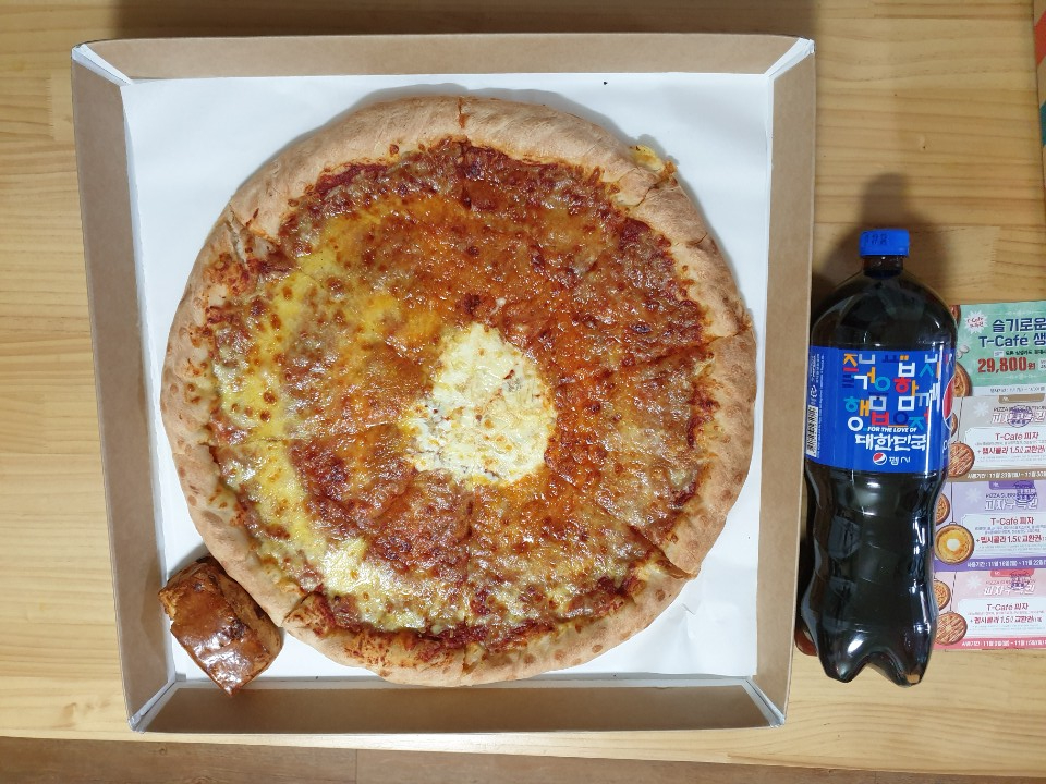 쿠폰한장과 피자+콜라를 바꿔왔어요