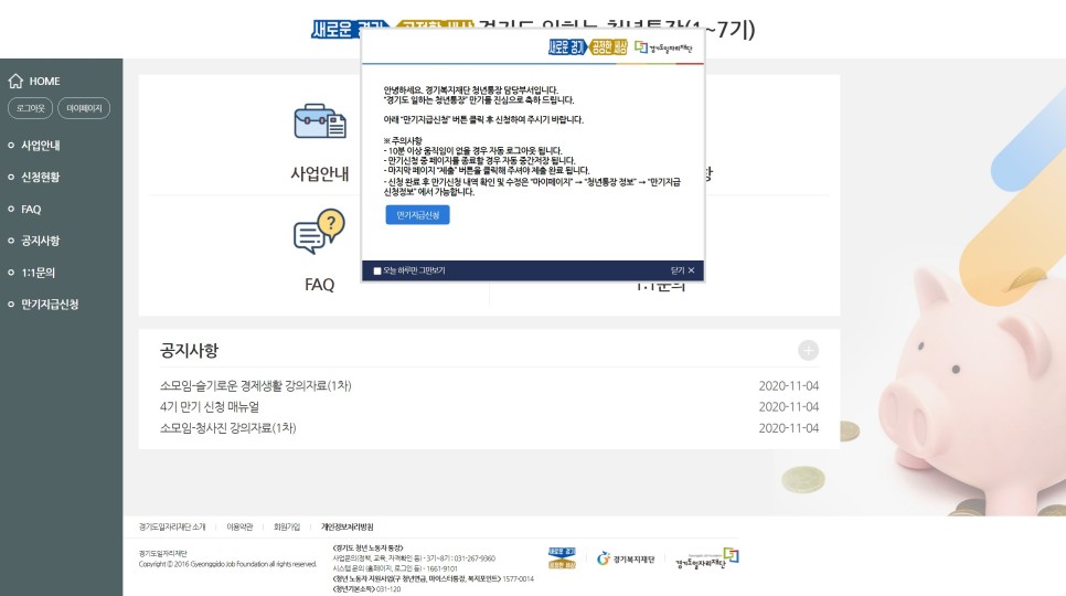 솔찍히 신청할때만 해도 왼쪽의 만기신청이 안보였어서, 팝업창을 눌렀어요 ㅋㅋ