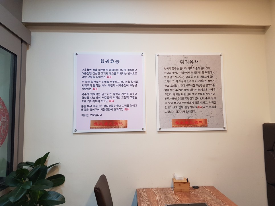 한쪽 벽면에 훠궈의 효능과 유래가 적혀 있습니다~