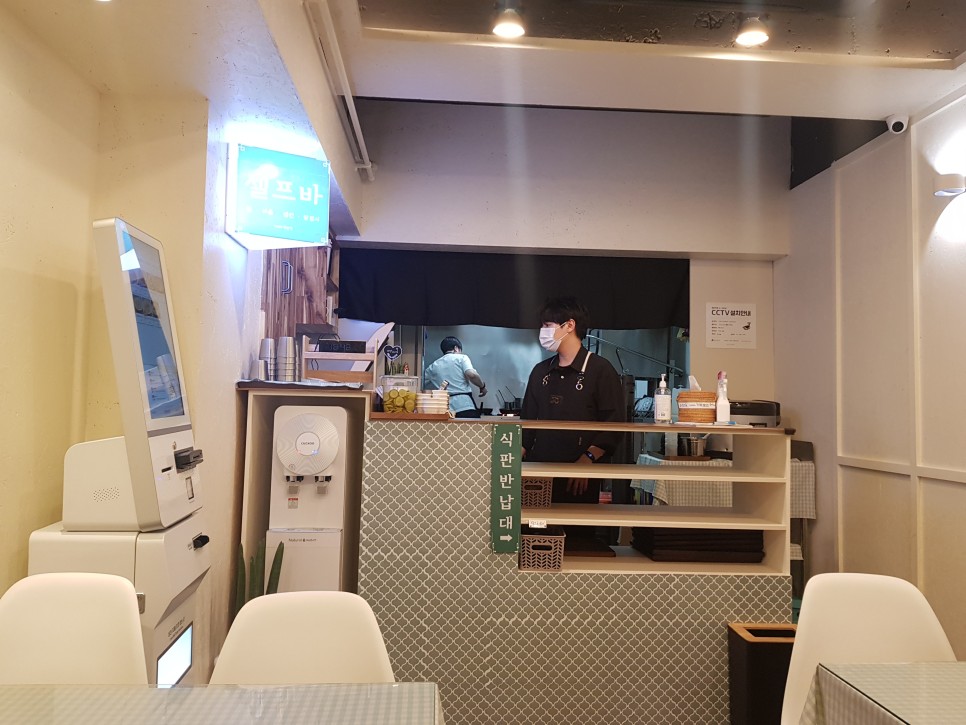 테이블이 좀 좁아요. 그리고 셀프로 모든 것을 해야 하다보니. 아이만 두기에는 신경쓰실게 많을 것 같아요