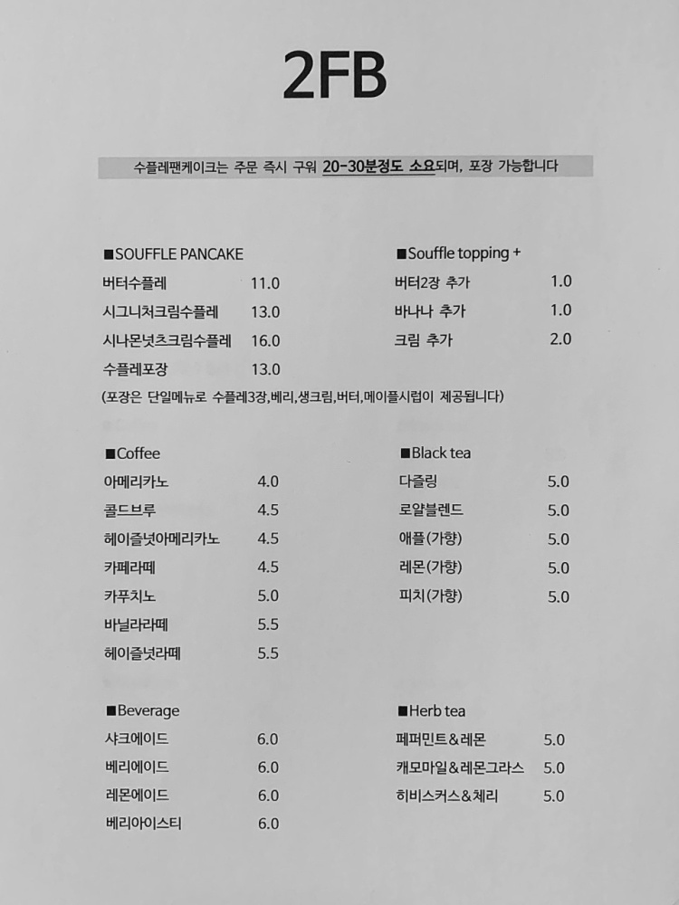 수플레 가게이지만, 수플레의 매뉴보다 음료의 메뉴가 더 많아요