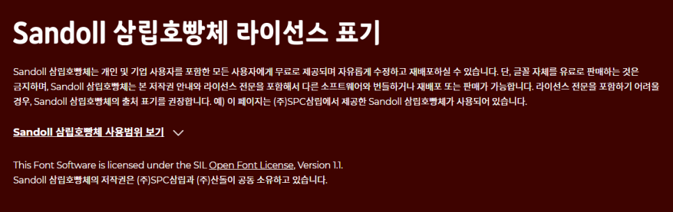 삼립호빵체는 개인 및 기업 모든 사업자가 자유롭게 수정 및 재배포를 할 수 있는 무료폰트 입니다