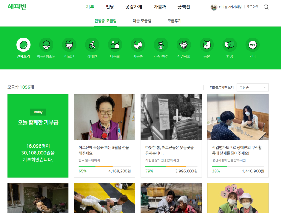 그중에서 제일 기부하고 싶은 곳을 골랐어요