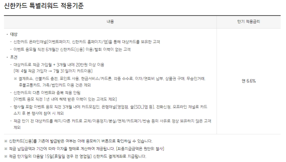 + 신한카드 특별리워드 충족시 6.6%