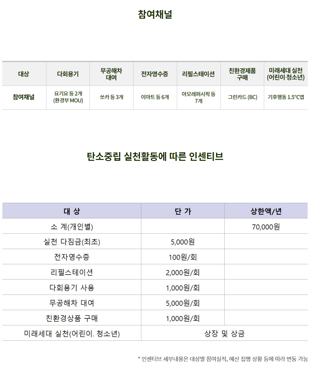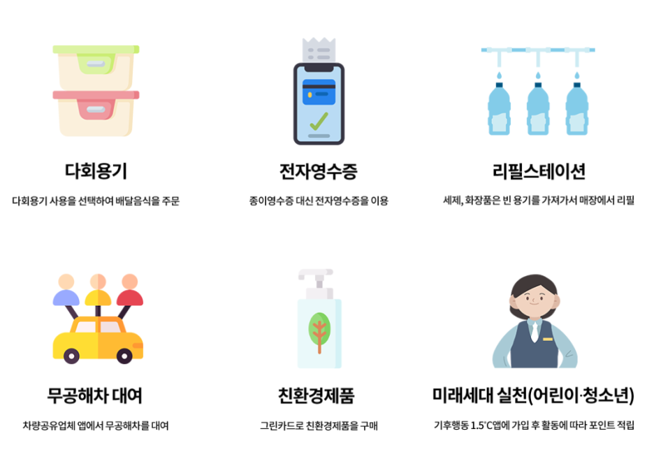 #전자영수증 #리필스테이션 #무공해차 대여 #다회용기 #친환경제품 구매(그린카드)